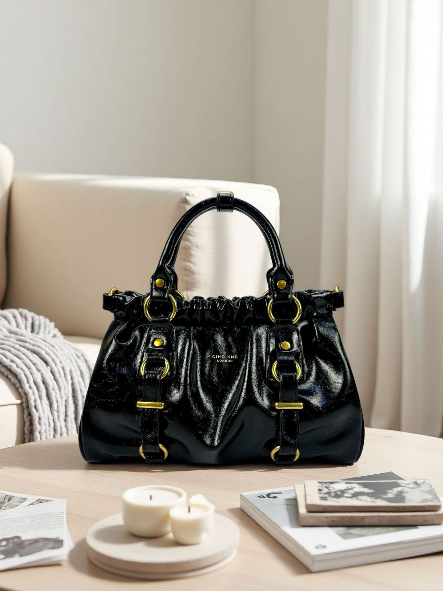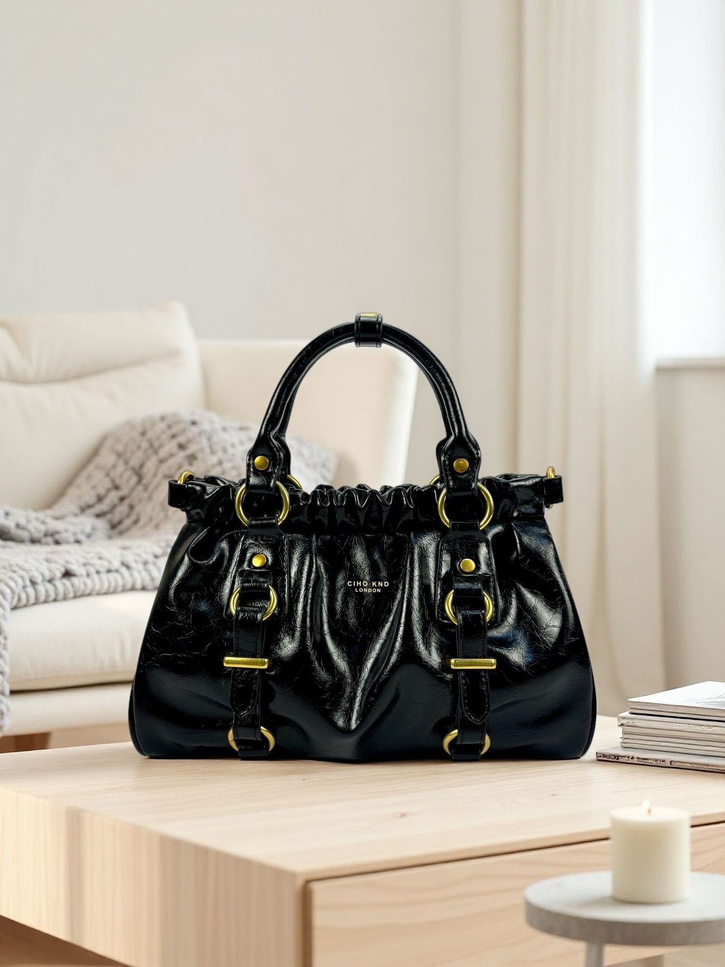 | brand | Ciho Knd | color | Black Leather Lady Tote Bag – Image and Color – Free Charm |