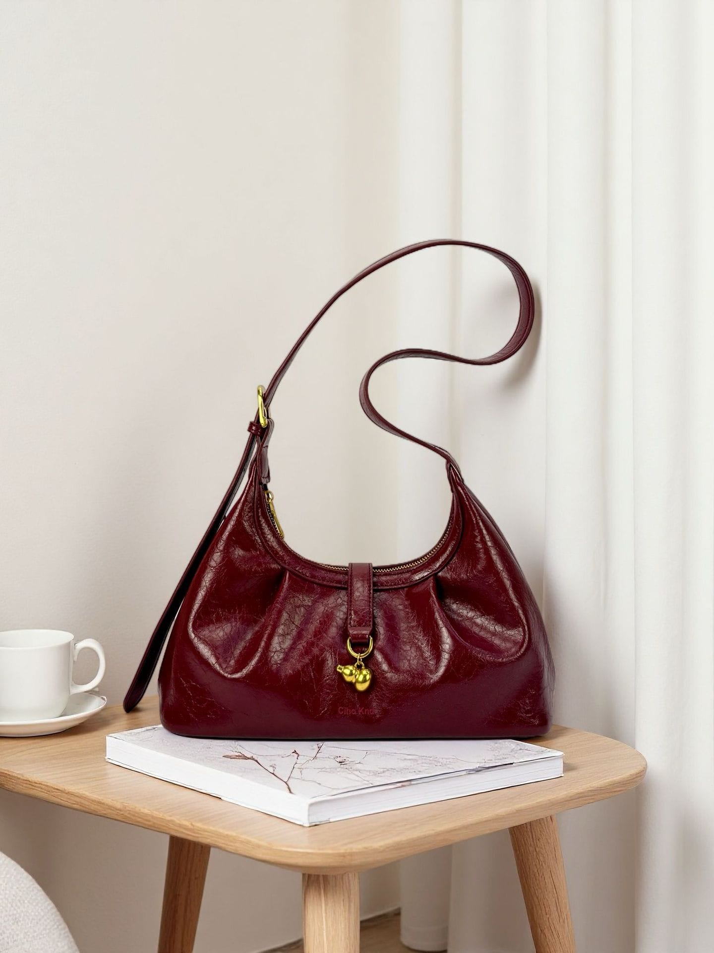 Don River Autumn Sun Tote Bag Women’s Wine Red Retro Pleated Shoulder Bag Crossbody Bag