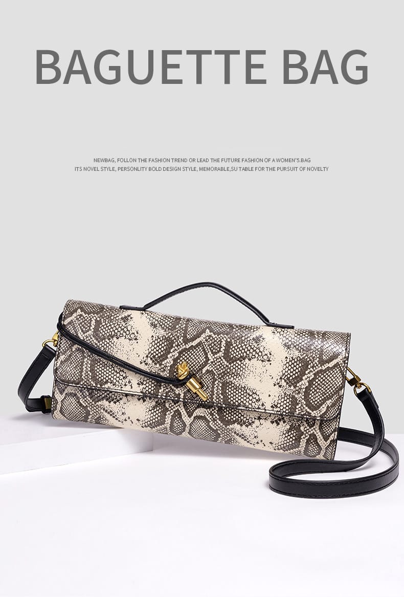 Fashion snakeskin leather handbag, niche retro shoulder/crossbody bag, light luxury feel women’s evening bag